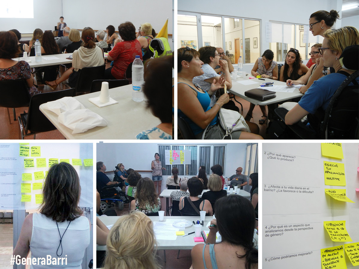 Per què en aplicar la perspectiva de gènere a l’urbanisme posem el focus en la dona i els rols que socialment li són assignats? Les conclusions dels anteriors tallers sobre mobilitat i espai públic, així com els resultats provisionals de les enquestes realitzades, posen de manifest que homes i dones tenen experiències diferenciades segons la seua condició vital i els rols que assumeixen en el seu dia a dia en la ciutat. A més, les dones continuen sent les que acaparen majoritàriament les responsabilitats de la cura i gestió de la vida quotidiana, la qual cosa es tradueix en patrons de mobilitat específics (més desplaçaments de proximitat, a peu o en transport públic) i un ús més intensiu i divers de l’espai i els serveis públics (més varietat de trajectes i destinacions). Promoure la veu de les dones i aprofitar el seu coneixement del barri per a debatre millores urbanes integrals resulta per tant necessari, a més de contribuir al seu apoderament com a agents transformadores del seu entorn.