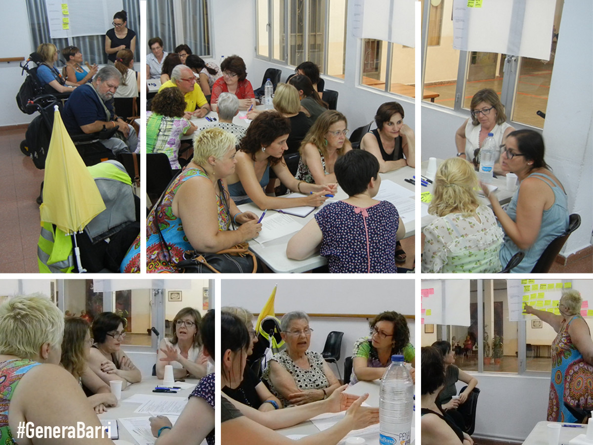 Amb aquesta reflexió de partida, el passat 15 de juny es va celebrar en el Centre Social Senabre el taller Escenaris de Futur, l’última activitat del cicle de sessions públiques de la fase participativa de #GeneraBarri. Al costat de noves assistents i participants d’anteriors tallers, es va comptar amb dones representants d’institucions i entitats locals que van ajudar a qüestionar l’ús equitatiu de la ciutat des de camps relacionats amb l’assistència i l’acció social, relacionant el factor del gènere amb uns altres com la realitat socioeconòmica o urbana, la diversitat funcional i la diversitat cognitiva. Entre elles, representants del Centre Municipal de l’Orientació i Informació a la Dona CMIO, el Centre Municipal de Serveis Socials de Sant Marcel•lí i les organitzacions Plena Inclusió CV, Associació de Dones amb Discapacitat Xarxa i Cermi CV.